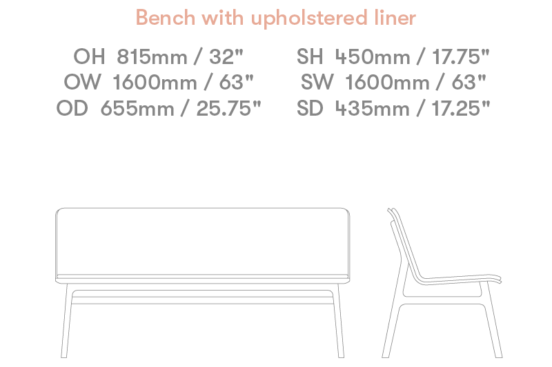 1600mm Bench with upholstered seat liner