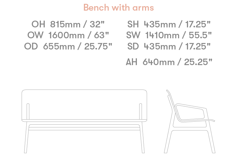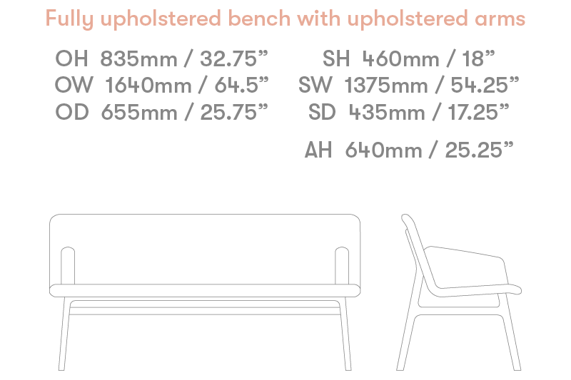 1600mm Bench fully upholstered with arms