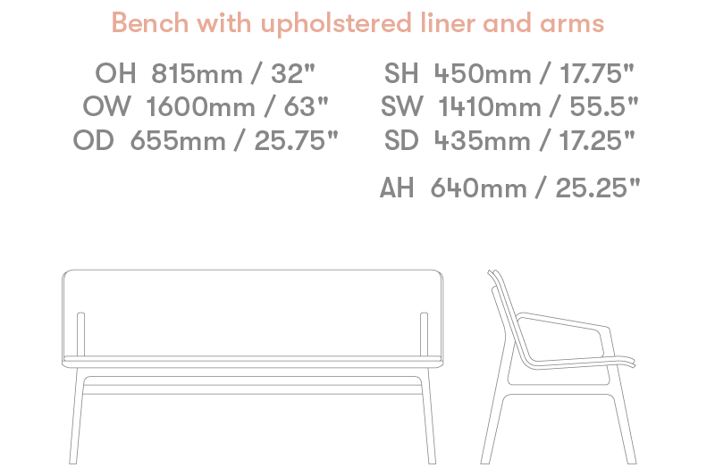 1600mm Bench with upholstered seat liner and cast arms