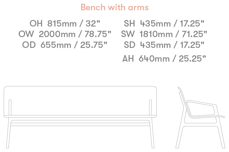 2000mm Bench fully upholstered with arms