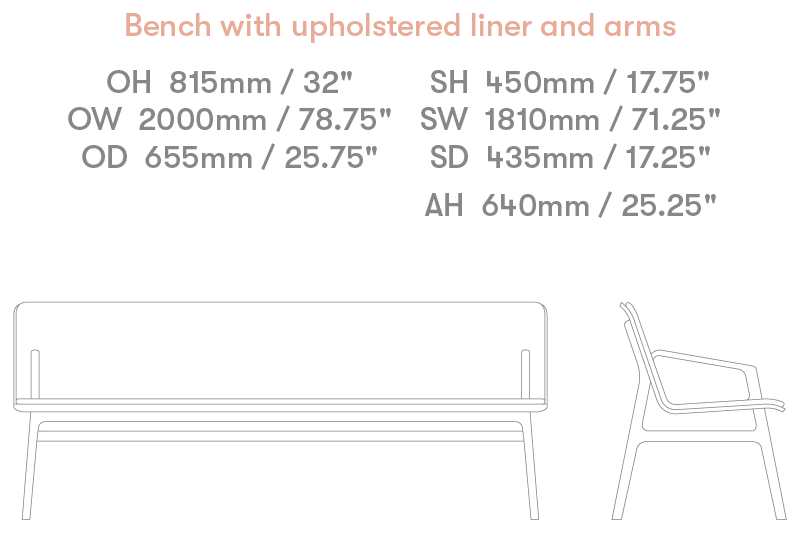 2000mm Bench with upholstered seat liner and cast arms