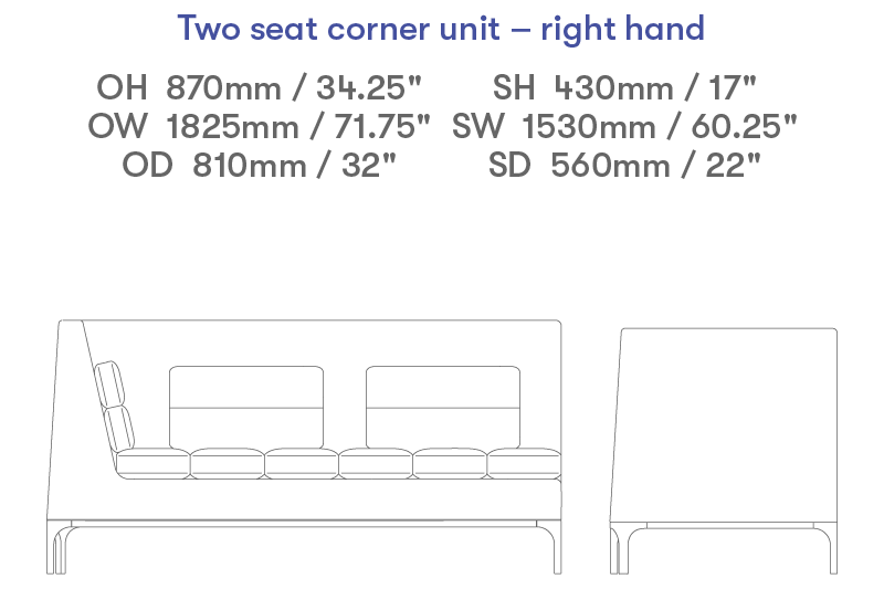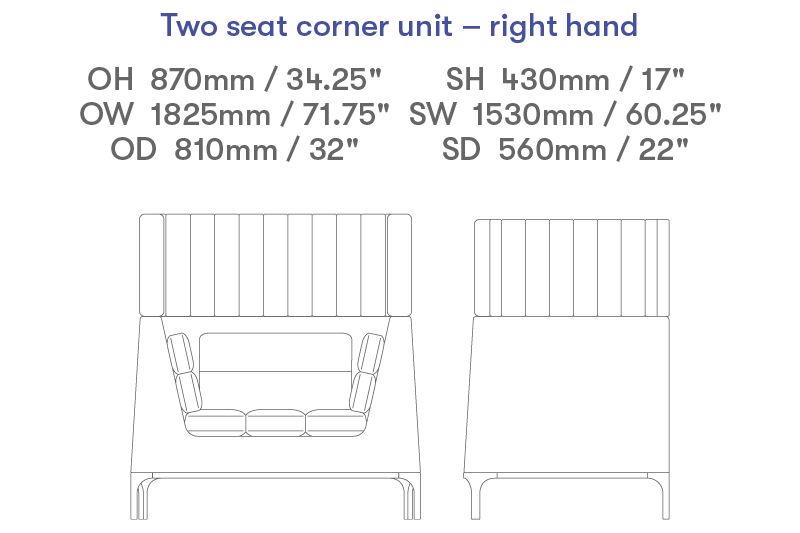 Two seat right hand corner unit