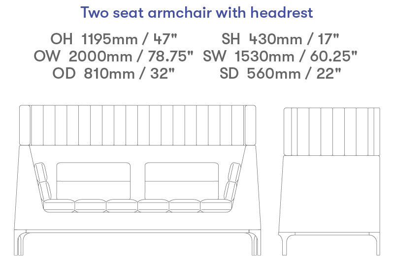 Two seat sofa with headrest