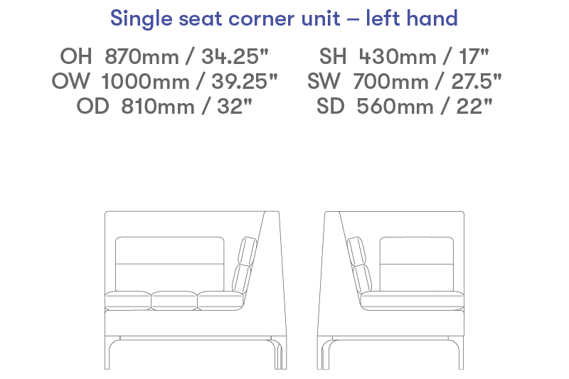 Single seat left hand corner unit