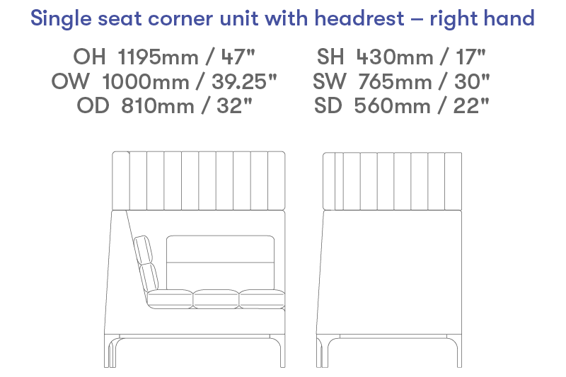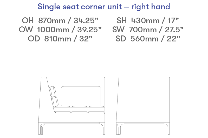 Single seat right hand corner unit