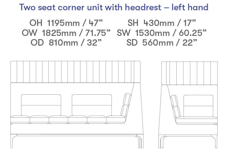 Two seat left hand corner unit with headrest