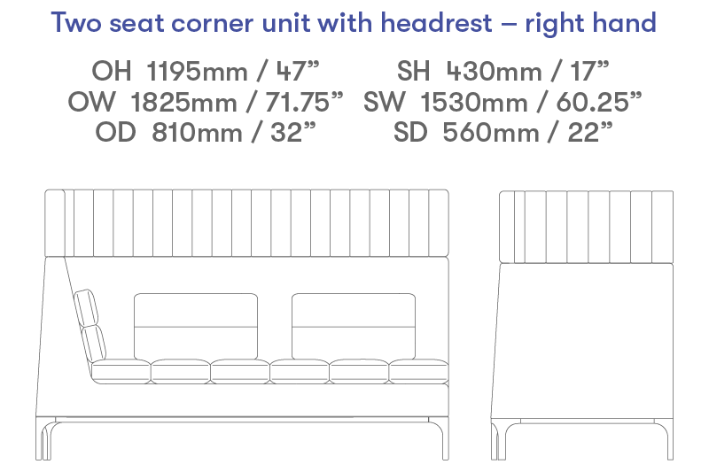 Two seat right hand corner unit with headrest