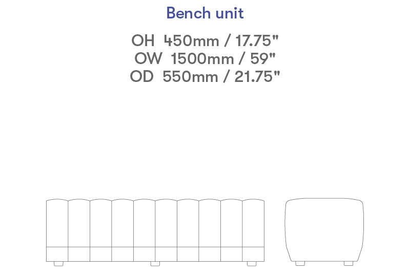 Headrests can be attached to the bench to act as a backrest or a space divider.