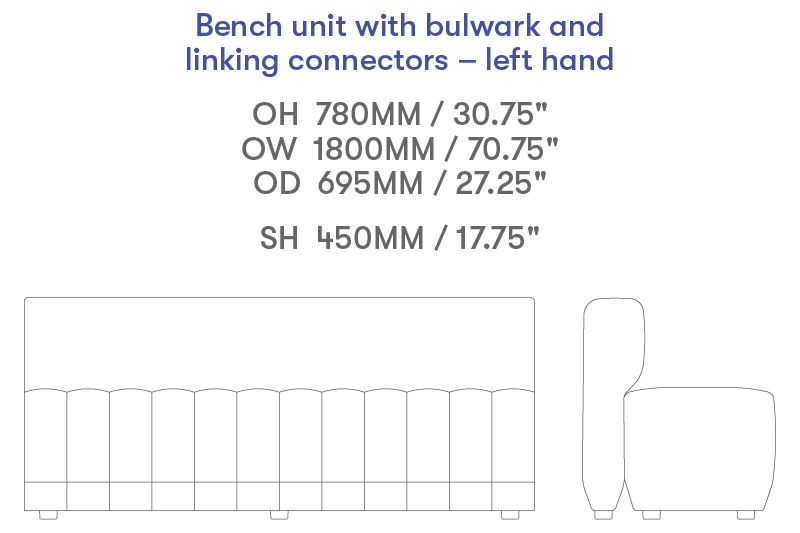 1800mm bench with bulwark, left hand connectors