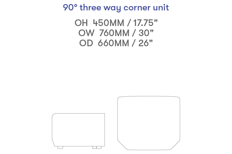 90 degree 3 way corner unit