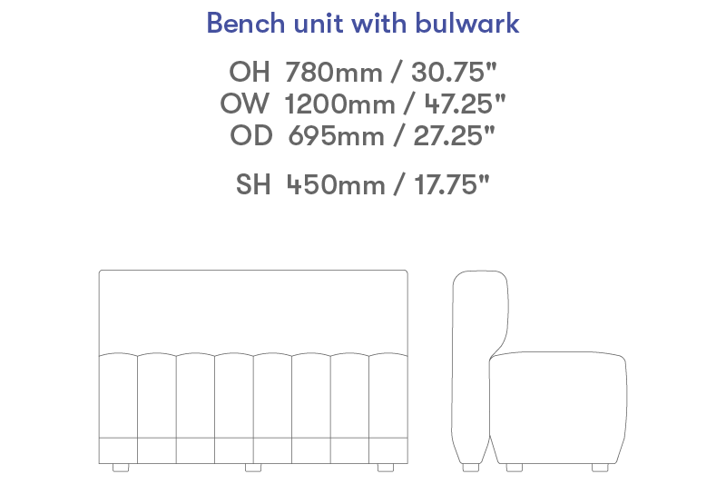 1200mm bench with bulwark, connectors each end