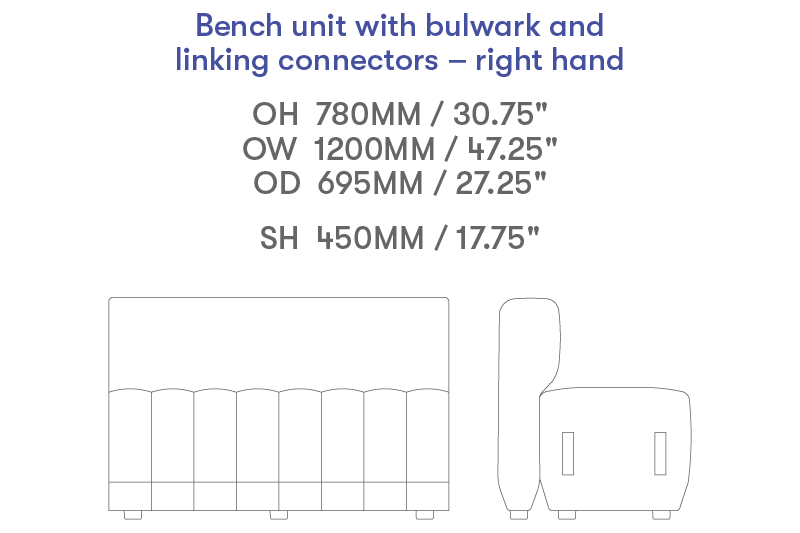1800mm bench with bulwark, right hand connectors