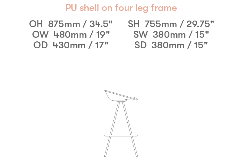 PU shell stool on a 4 leg frame