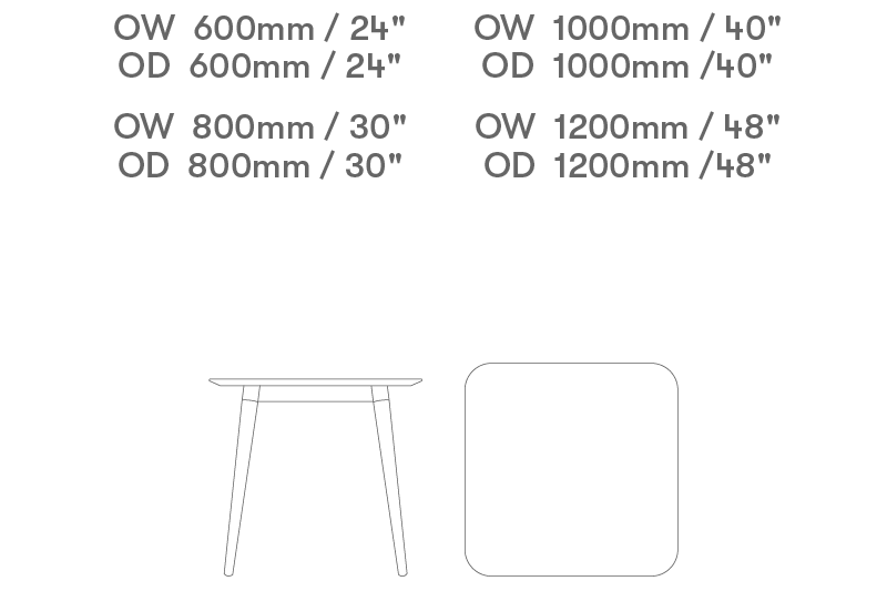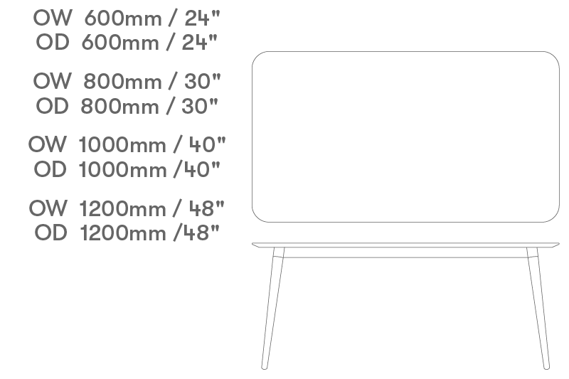 A range of top shapes and sizes are available, see dimensions section for further detail